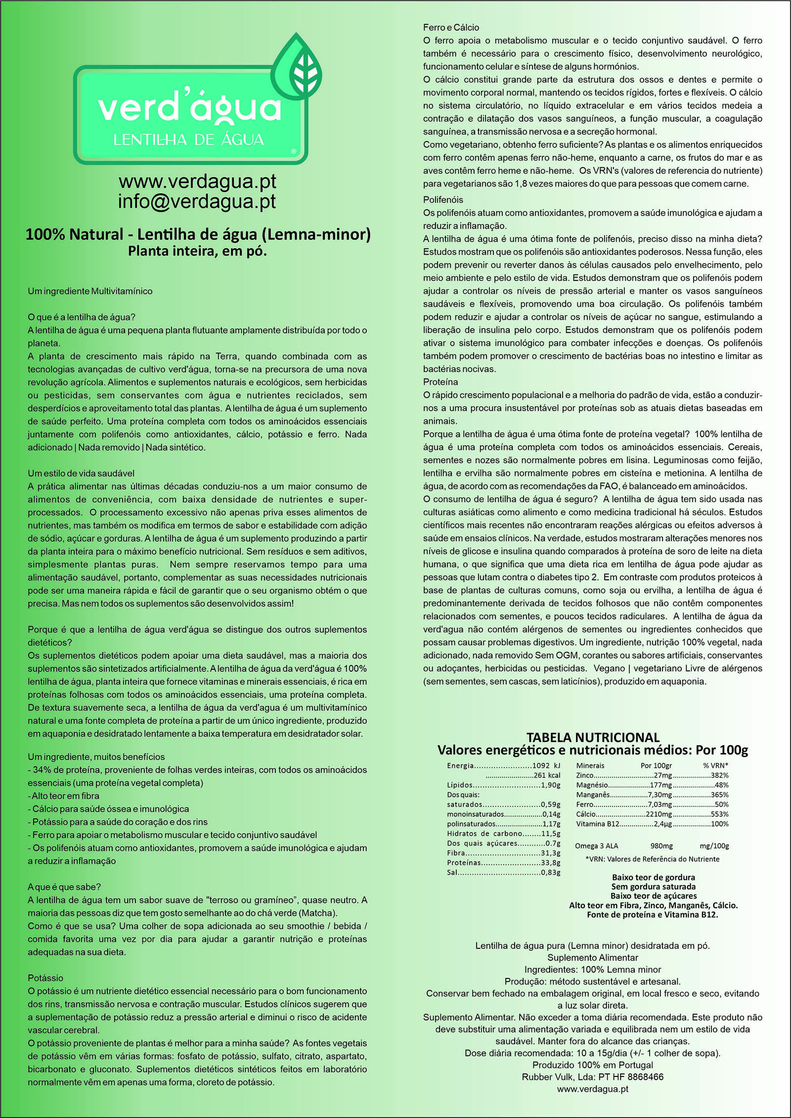 LENTILHA DE AGUA PURA DESIDRATADA EM PO (30GR)